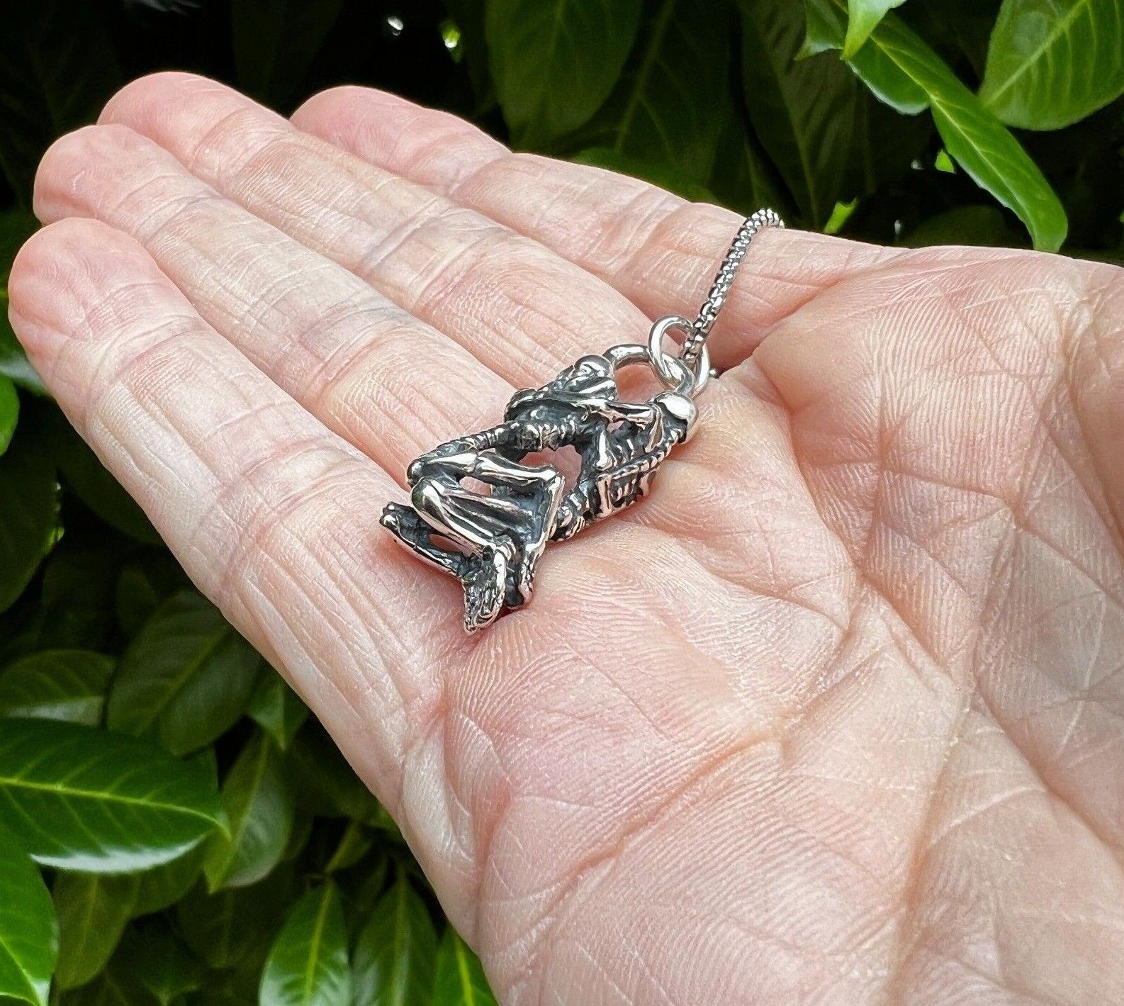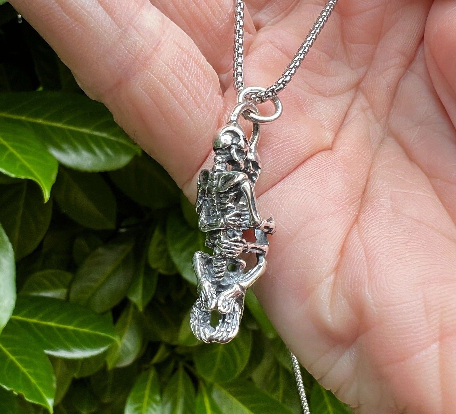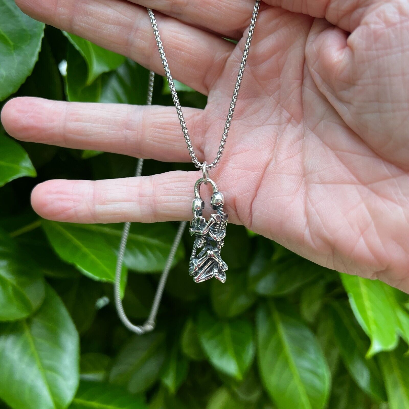 925 Sterling Silver Hallmarked Skeleton Lovers Pendant with free stainless steel chain
